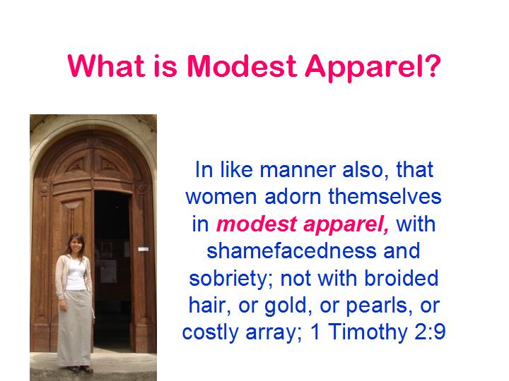 Please keep in mind that the following presentation upholds a very high standard of biblical modesty. These principles are not widely practiced in the Seventh-day Adventist Church. But that doesn't mean that we should lower the standard to fit the common practice. God's standards are high, and He eagerly provides the strength for His people to uphold them. Dear sister, if you find that your practices are not in harmony with these principles, please don't quickly react with anger. Be willing to carefully and prayerfully consider if God would be pleased to have you adopt these principles with a loving and submissive heart. May God bless you!